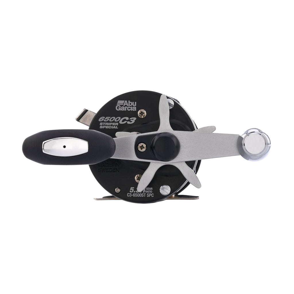 Born from the round reel platform, the Ambassadeur® Striper Special fishing reel offers anglers a unique package backed with proven components designed with striper fishing in mind. Performance starts with 3 stainless steel ball bearings + 1 roller bearing system and a smooth and consistent Carbon Matrix™ drag system. The 6-pin centrifugal brake delivers controlled casting while the extended bent handle with power knob gives anglers additional torque and power for hard-pulling fish. The synchronized level wind system ensures even line lay and a smooth retrieve.