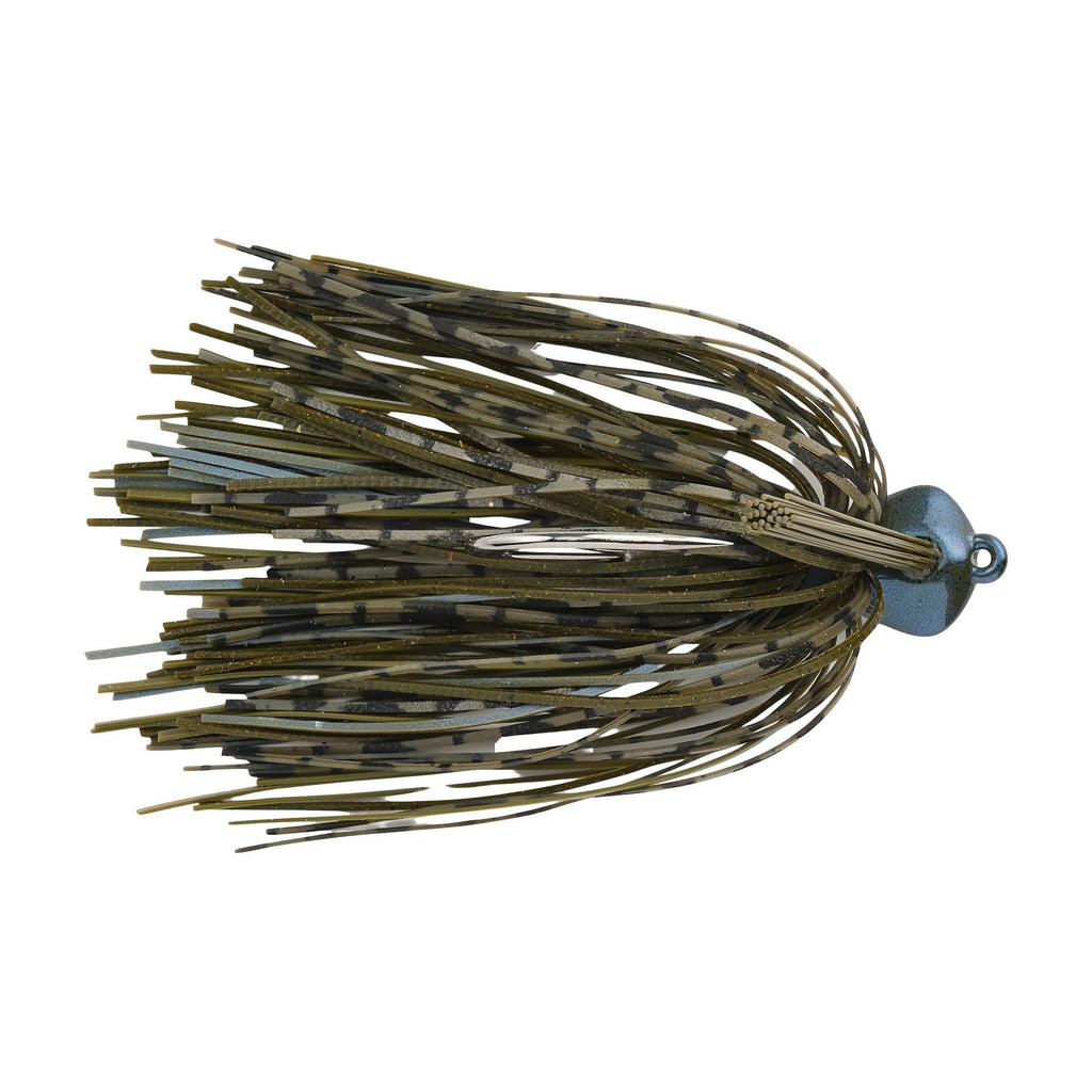 Designed with a wide, flat head, and bulky skirt, the Berkley® Skippin’ jig easily skips across the surface of the water into the darkest shade pockets of a dock or other overhanging cover.