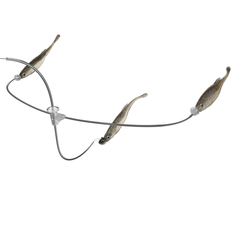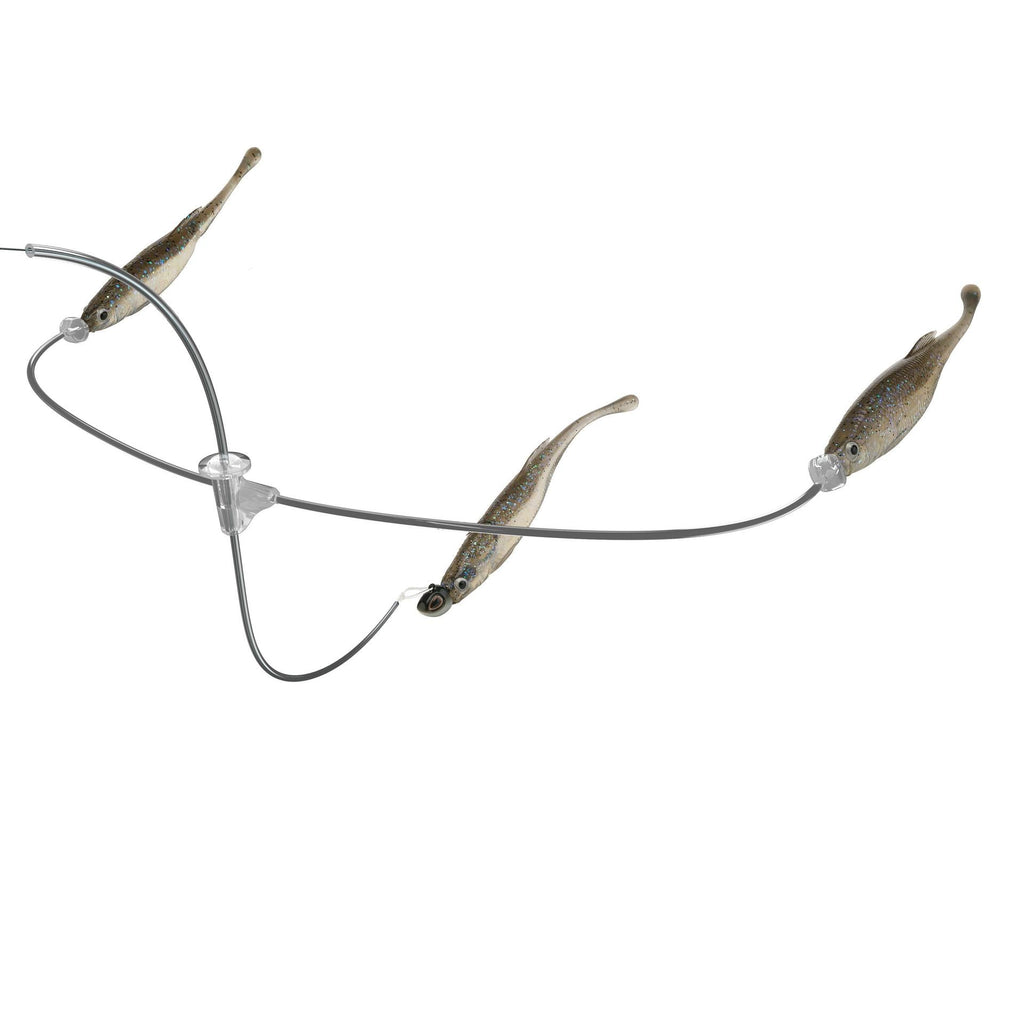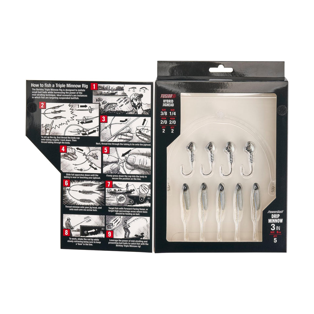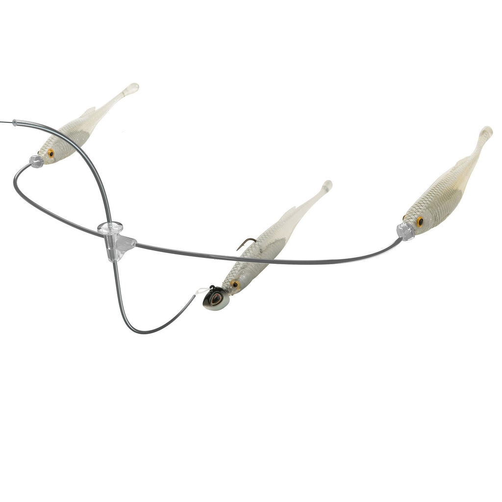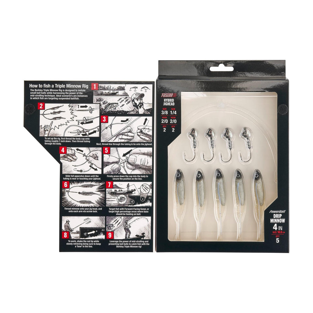 Conceived from the ancestral link of predator, prey and bioenergetics, the Berkley Triple Minnow Rig revolutionizes the art of presenting a jighead and minnow. Featuring three minnows working in harmony, the Triple Minnow Rig presents a discreet bait ball within the methodology of mid-strolling. Developed in the depths of Berkley Labs, its line-through design ensures the main-line minnow rolls effortlessly, delivering flawless, lifelike action. Clear fluorocarbon and thermoplastic construction minimize visibility, making the rig nearly invisible underwater. Secured with precision, it stays in place without damaging the line while reducing tangles. Harness the rhythm of nature and leverage the power of presenting a bait ball whilst using the most effective finesse technique with the Berkley Triple Minnow Rig.