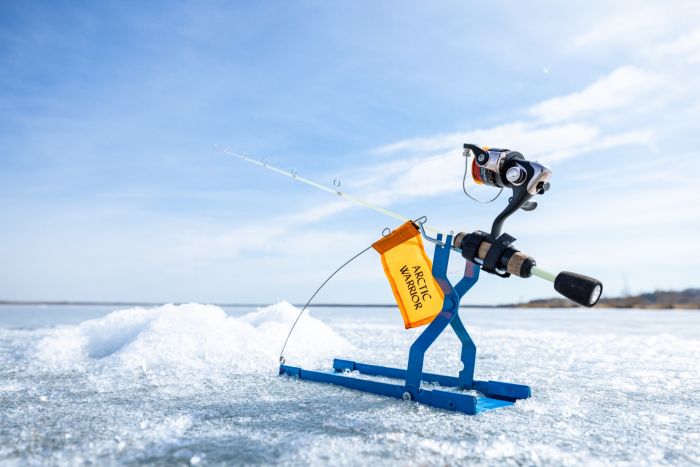 No hand-over-hand retrieval or frozen fingers! The remarkable Arctic Warrior tips down, and the flag goes up when a fish bites. Grab the rod and reel, set the hook, and fight the fish. No hand over hand combat and no frozen fingers. No heavy braided line strewn across the ice and tangled in knots. It’s just you, the rod, the reel, and the fish. Excellent as a secondary line for walleyes, northern pike, lake trout, and jumbo perch.