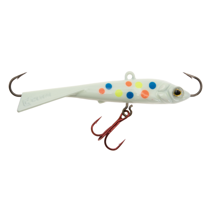 Designed specifically for a vertical presentation, the Tikka Mino is the ultimate balanced minnow. With its indestructible fin design, it swims and darts like a panicked baitfish and features unique Prism Holographic along with powerful glow colors that attract predator fish.
