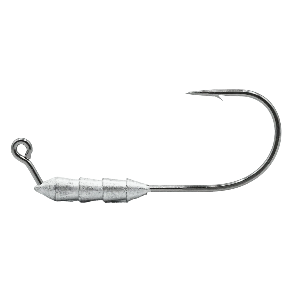- Provides a more compact design versus traditional swimbait jig heads