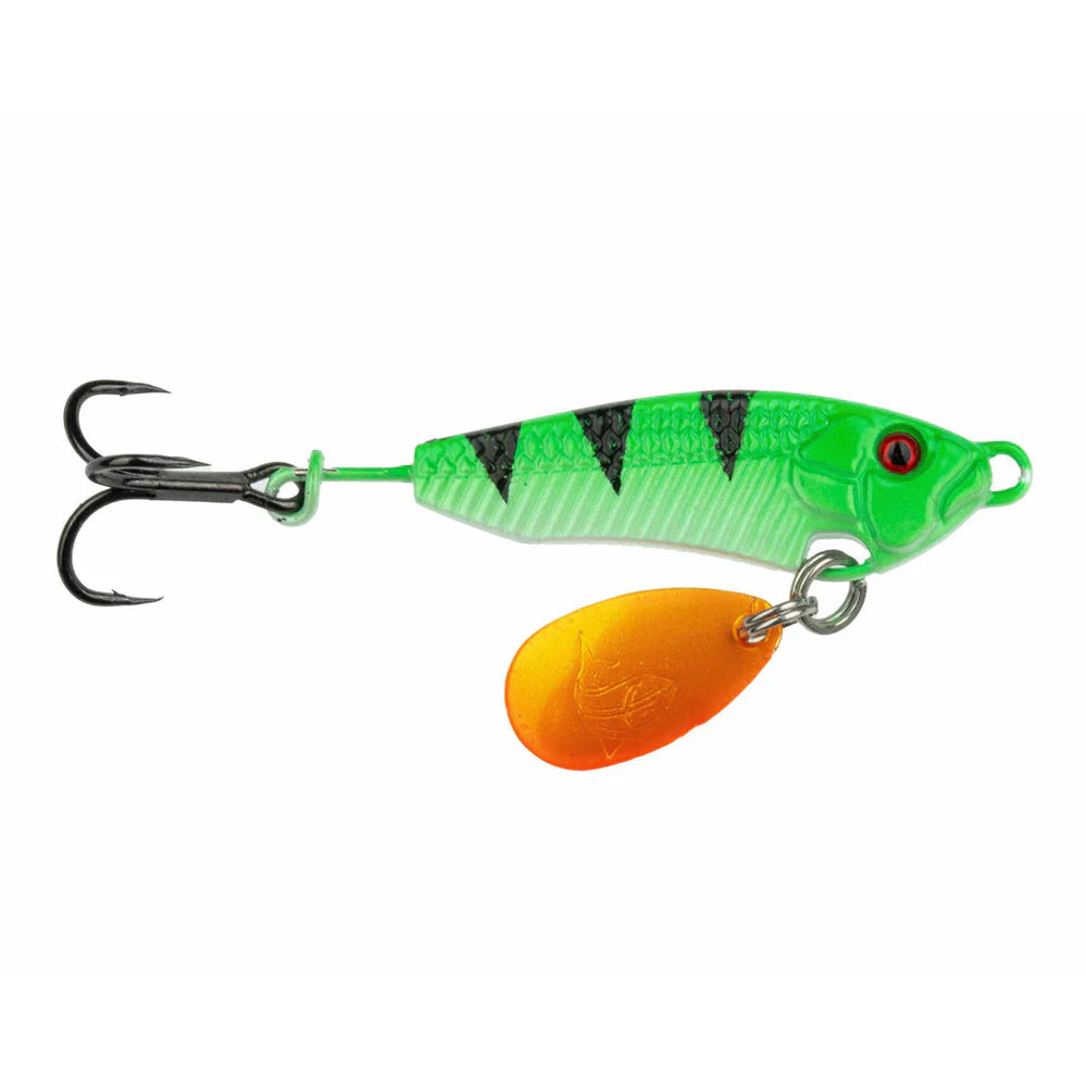 The premium zinc, UV coated body carries an Indiana blade mounted on the belly which swings loosely on the rise and fall to maximize both flash and vibration while creating the erratic action of a baitfish in trouble.