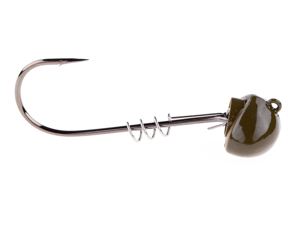 This unique head design minimizes snags while enhancing your bait’s action upon deflection. The head also allows the Jig to land in the optimal upright strike position. The quick-change hook system allows for customization to fit any situation.