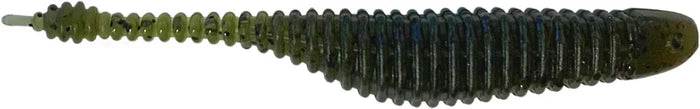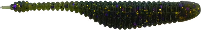 The ribbed body provides a unique vibration in the water and the thin tail gives incredible lifelike action. When dead-sticked on a drop-shot or suspended on a jig head the bait will sit perfectly horizontal giving it a natural appearance. The smallest amount of movement in the bait will have the tail twitching like crazy.