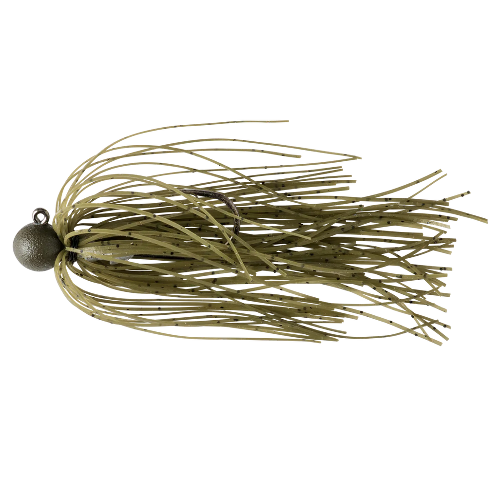 A super finesse micro jig with a hook that can handle the biggest fish in the lake. The Matte Finesse Jig is built on 1/0 Gamakatsu 604 hook. The ball head design will crawl through rocks and sparse vegetation with ease while not chipping. The skirt material is super thin so it will pulse in the water with minimal jig movement, and the oversized keeper will securely hold any small soft plastic trailer you choose like our 2.1" Snack Craw.