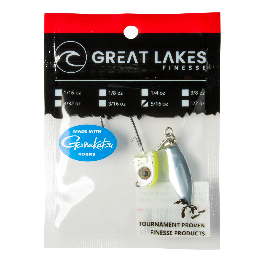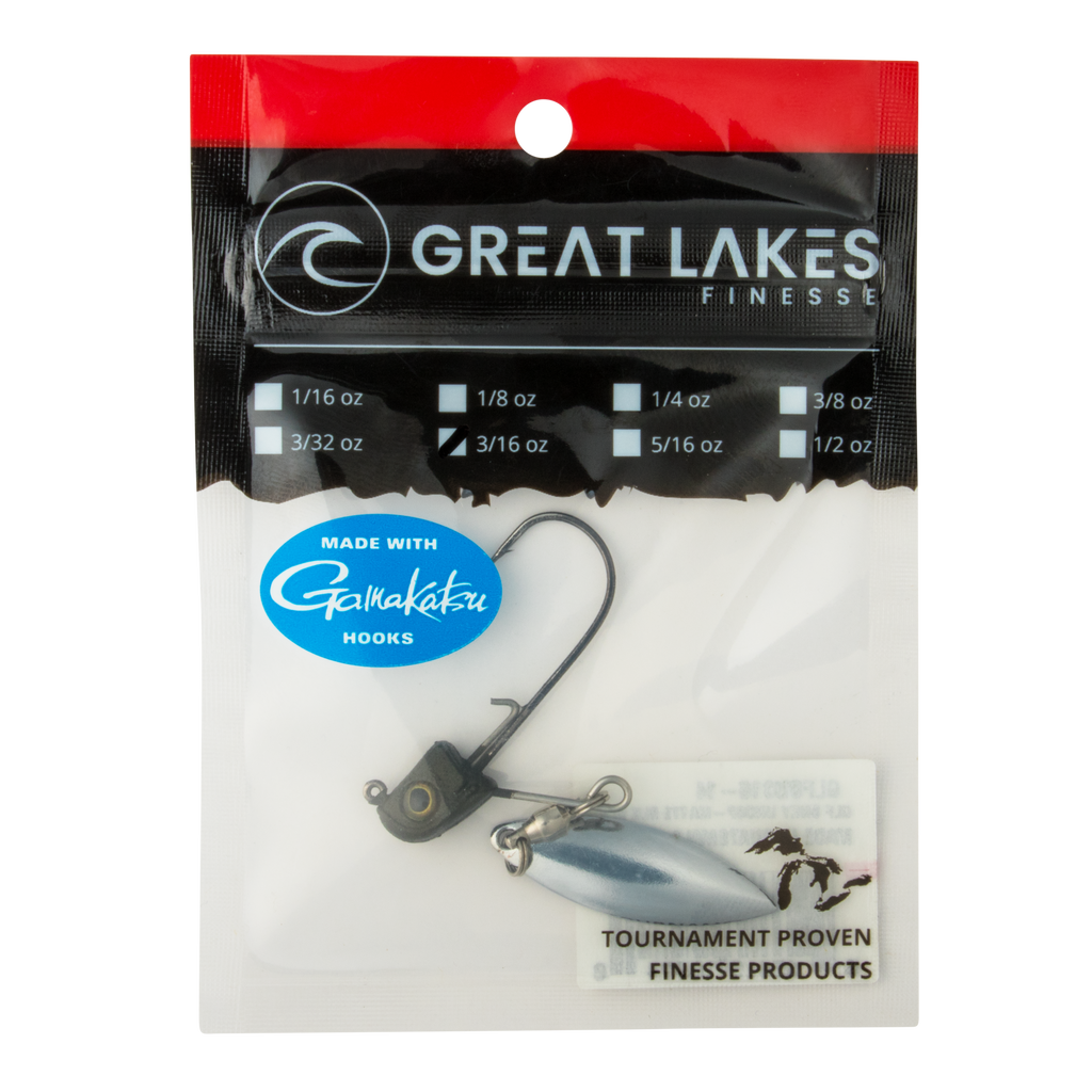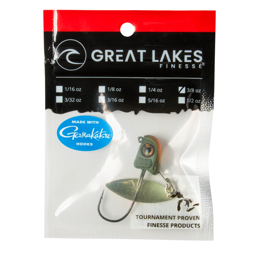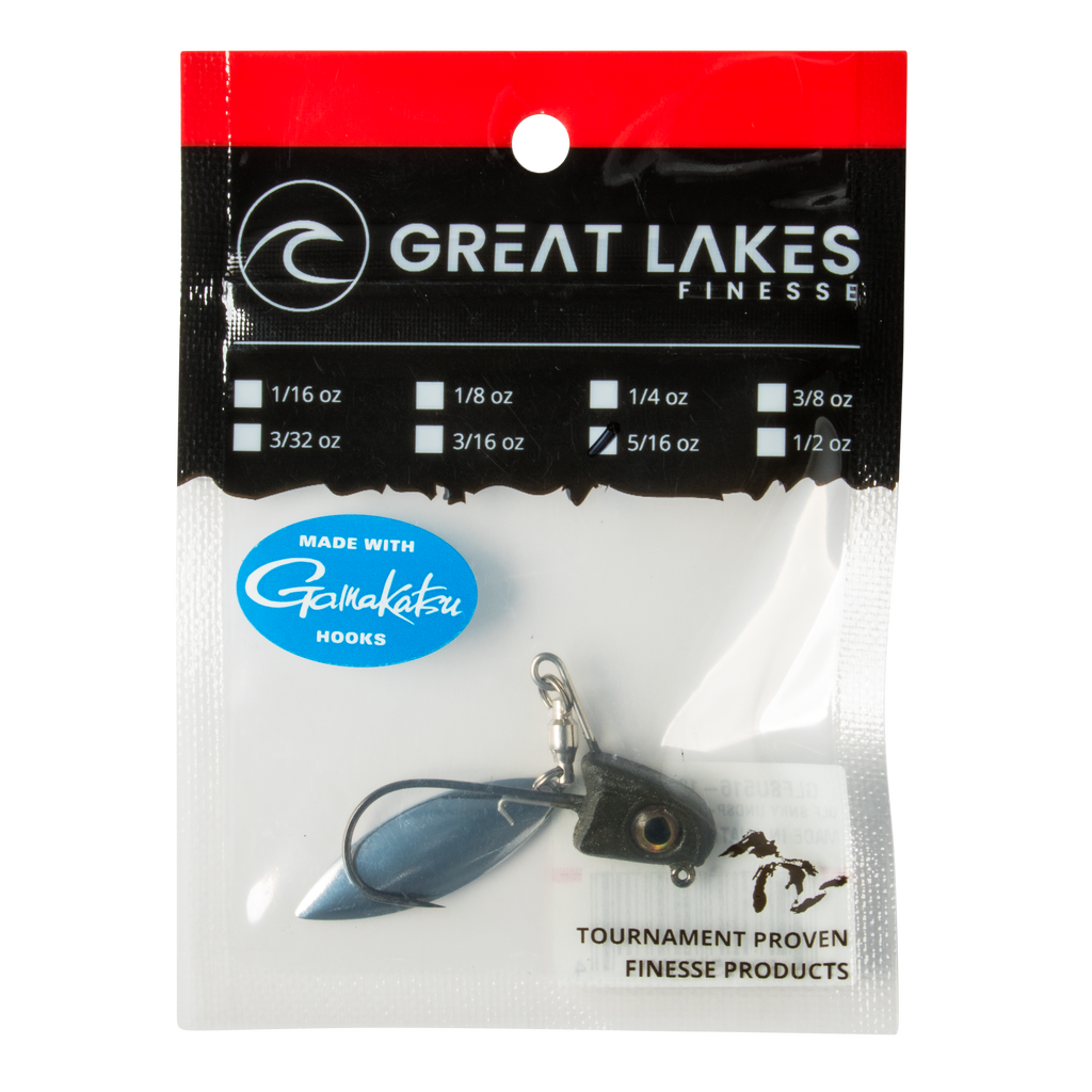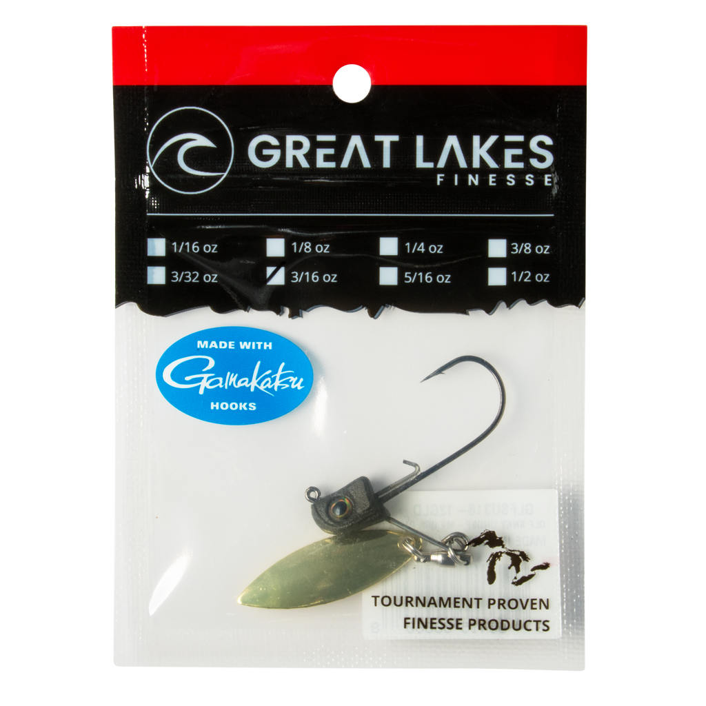 The Sneaky Underspin is everything premium youve come to expect from Great Lakes Finesse Also known as the Lake Vacuum to us because it catches everything this underspin has been thought out from endtoend to perform to the high standards of the most hardcore anglersStainless steel components and a ball bearing swivel will have the blade spinning at the slowest retrieve speed Featuring a 10 Owner hook and wire bait keeper its designed to match finesse swimbaits and our 275 Drop Minnow perfectly Our custom head design lifelike 3D eyes and forward line tie placement allow it to swim perfectly horizontal and through sparse vegetation with no hangups The 316oz is perfect for shallow slow rolling presentations while the 516oz is perfect for burning it shallow or getting deep with a finesse bait