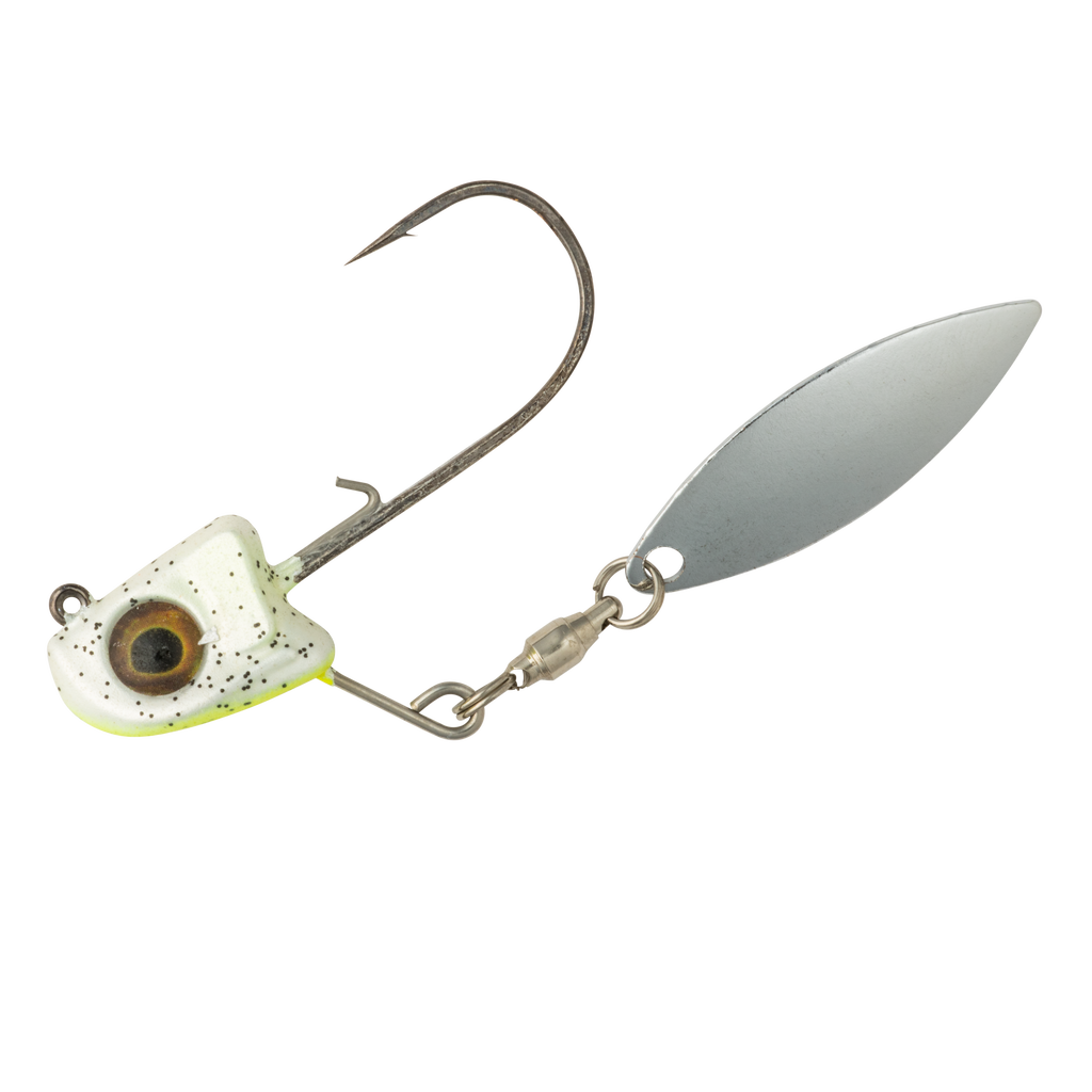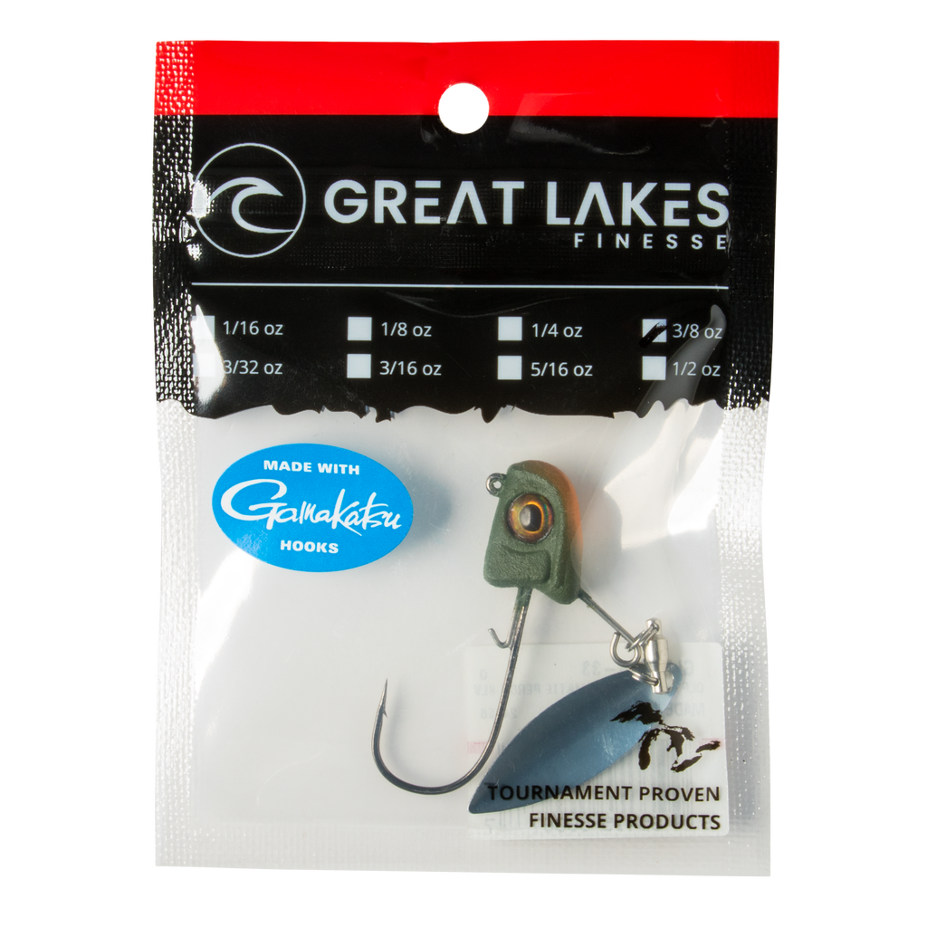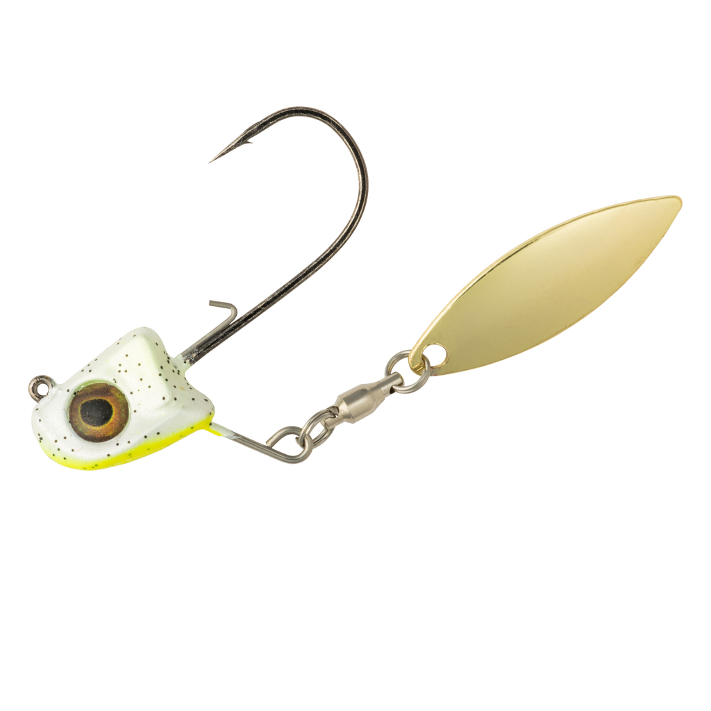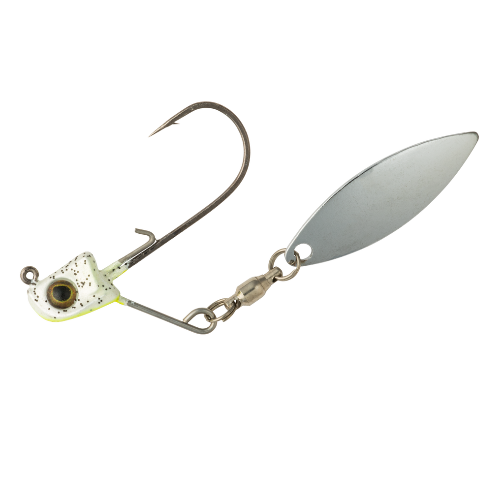 The Sneaky Underspin is everything premium youve come to expect from Great Lakes Finesse Also known as the Lake Vacuum to us because it catches everything this underspin has been thought out from endtoend to perform to the high standards of the most hardcore anglersStainless steel components and a ball bearing swivel will have the blade spinning at the slowest retrieve speed Featuring a 10 Owner hook and wire bait keeper its designed to match finesse swimbaits and our 275 Drop Minnow perfectly Our custom head design lifelike 3D eyes and forward line tie placement allow it to swim perfectly horizontal and through sparse vegetation with no hangups The 316oz is perfect for shallow slow rolling presentations while the 516oz is perfect for burning it shallow or getting deep with a finesse bait