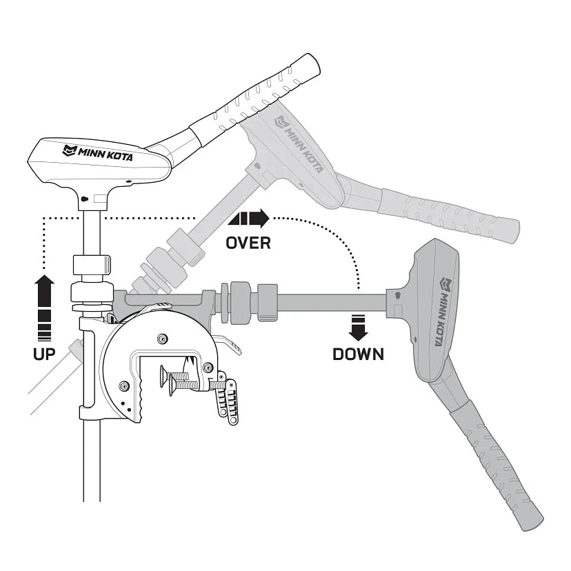 - One-Hand Stow Just pull up and forward to stow the motor with no buttons or release levers. Then when it's time to go, use the easy-access thumb release to deploy Traxxis into any of ten different positions.