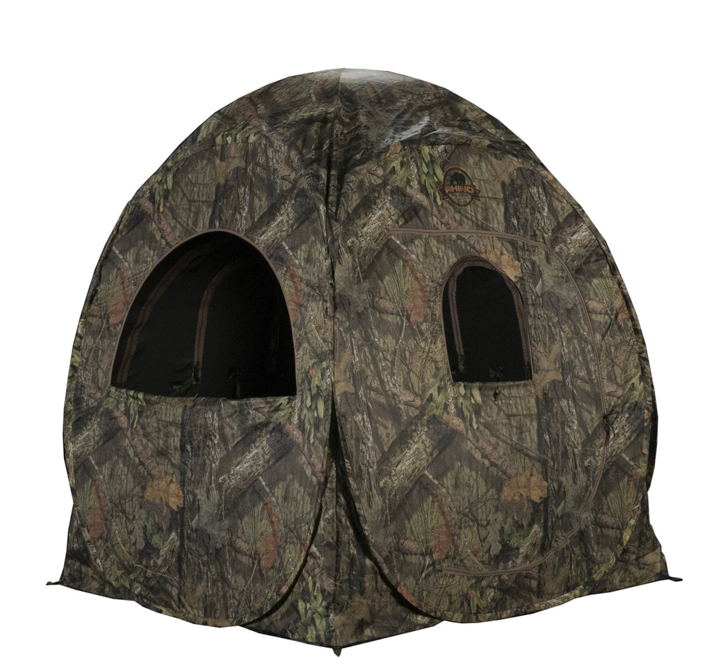 Rhino Blinds' R75 Mossy Oak Break Up Country ground blind fits one to two people and has a 66" center height with floor space dimensions of 60" x 60". It's constructed of true 150 denier polyester thread in both horizontal and vertical weave. Rhino Blinds are easy to set up and take down, and with a little practice setting the blind up can be accomplished quickly in as little as 60 seconds once the blind is out of the carry bag. Rhino Blinds ensure reliable hunting. Set up at hunting site 3-4 days ahead of hunt to allow your Rhino Blind to blend into the site location and become part of the scenery. Rhino Blinds are built tough and designed to withstand the most inclement weather conditions you dare to be caught in; rain, snow, hail, wind and more. The window system in the Rhino 75 has four zippered windows allowing easy window adjustment. Features a window on all four sides with the option for a large or small window opening to allow for an easy view of your surroundings. Once set up, you can shoot right through the mesh on the small window with a bow or a gun to stay hidden.