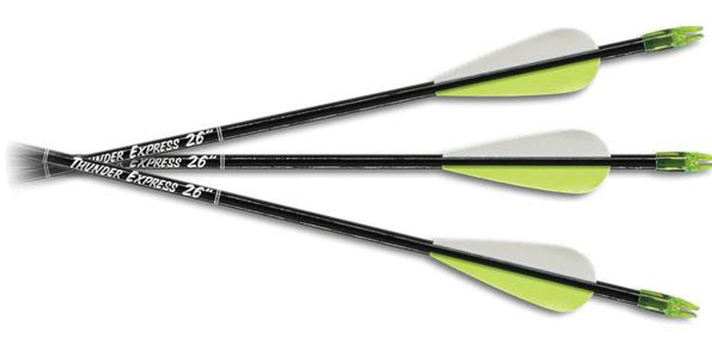 For use with bows up to 35 lbs. Black Fiberglass construction. Milled point design for correct front-of-center balance. Replaceable nocks/points. 3 vanes.