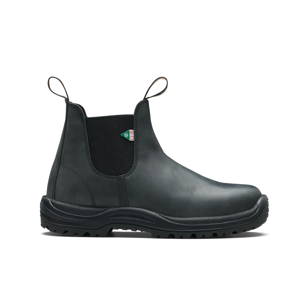 New Blundstone #181 Work & Safety in Waxy Rustic Black meets most company uniform colour standards, even if the standard is blue jeans. The waxy finish protects the leather, packing more days into each boot. The patented Blundstone SPS (Shock Protection System) disperses shock at heel strike and reduces skeletal stress absorbing up to 90% of the impact as you walk. Seams over the instep, a key source of irritation, are avoided along with many potentially leaky stitch holes. Lightweight, one-finger easy, all-day comfort. Oh, we could wax on!